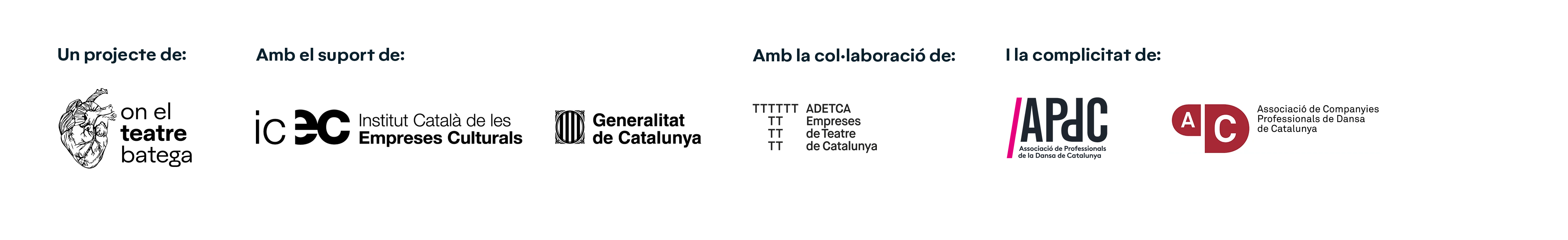 Aquest espectacle forma part de T'apropem allò que ens mou, un cicle per situar la dansa dins la programació estable dels teatres de proximitat, afavorint-ne la continuïtat, la visibilitat i el contacte directe amb els públics. Un projecte d'On el teatre batega que neix el marc del II Pla d'Impuls de la dansa de Catalunya 2023-2026, amb el suport de l'Institut Català de les Empreses Culturals (ICEC) del Departament de Cultura de la Generalitat de Catalunya, la col·laboració d'ADETCA i la complicitat de l'APDC i l'ACPDC.